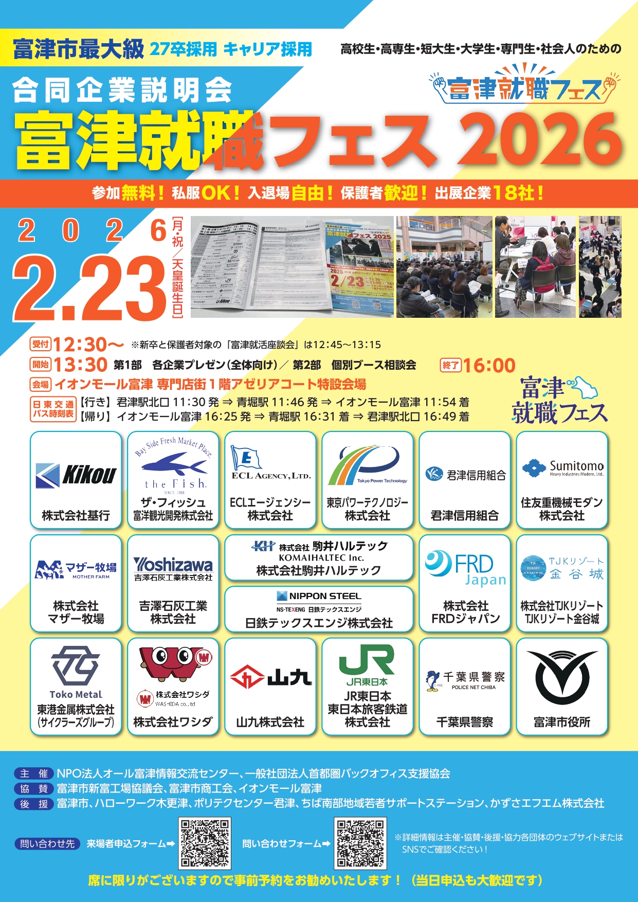今年も開催いたします。日時:2025年2月23日(月祝)12:30受付場所:イオンモール富津 1階アゼリアコート 特設会場